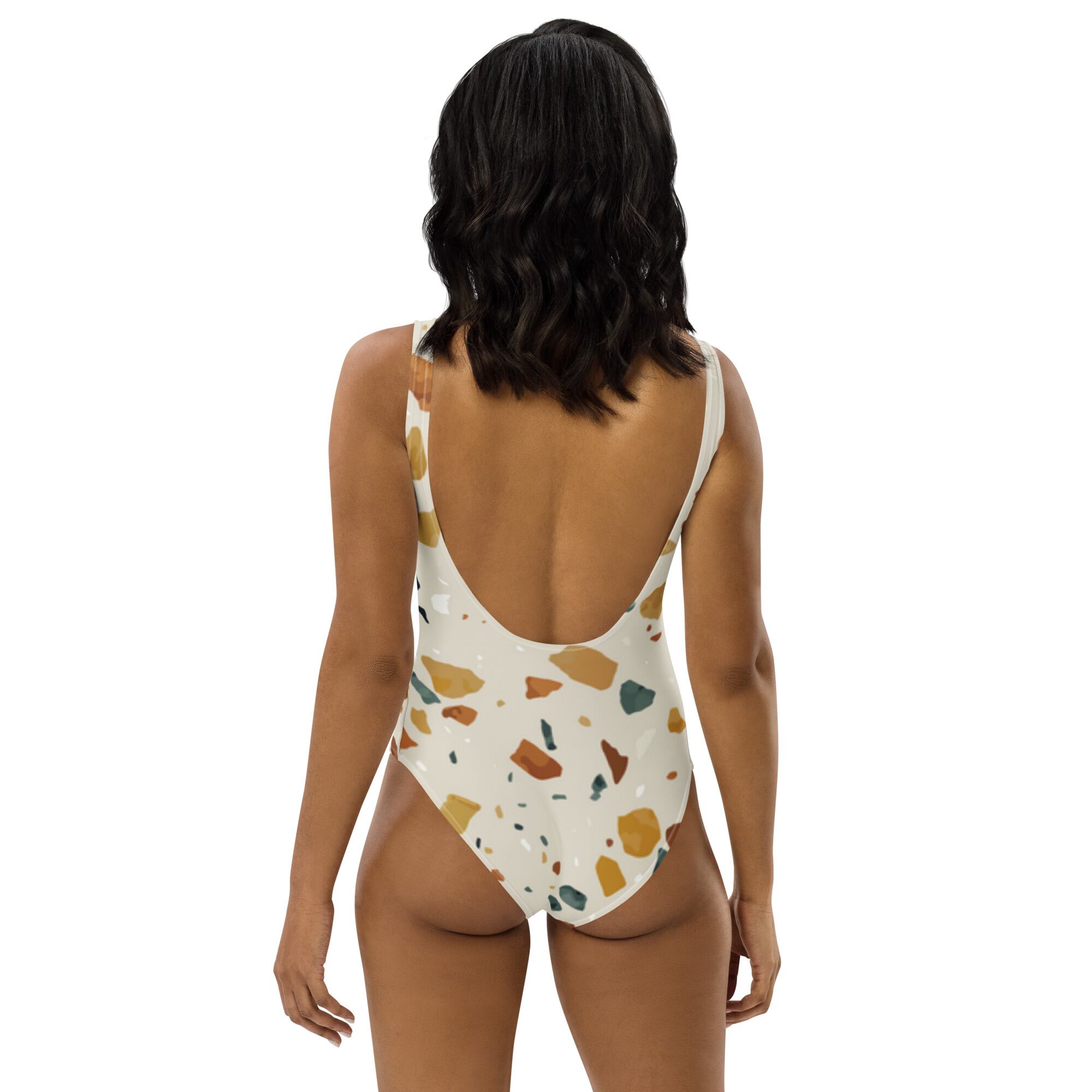 Inspired by the timeless elegance of terrazzo surfaces, the Terrazzo One-Piece Swimsuit brings earthy tones and organic patterns together in a refined neutral palette. The flattering silhouette, chlorine-resistant fabric, and durable stitching make it your perfect summer essential — whether you're lounging poolside or diving into the deep end.