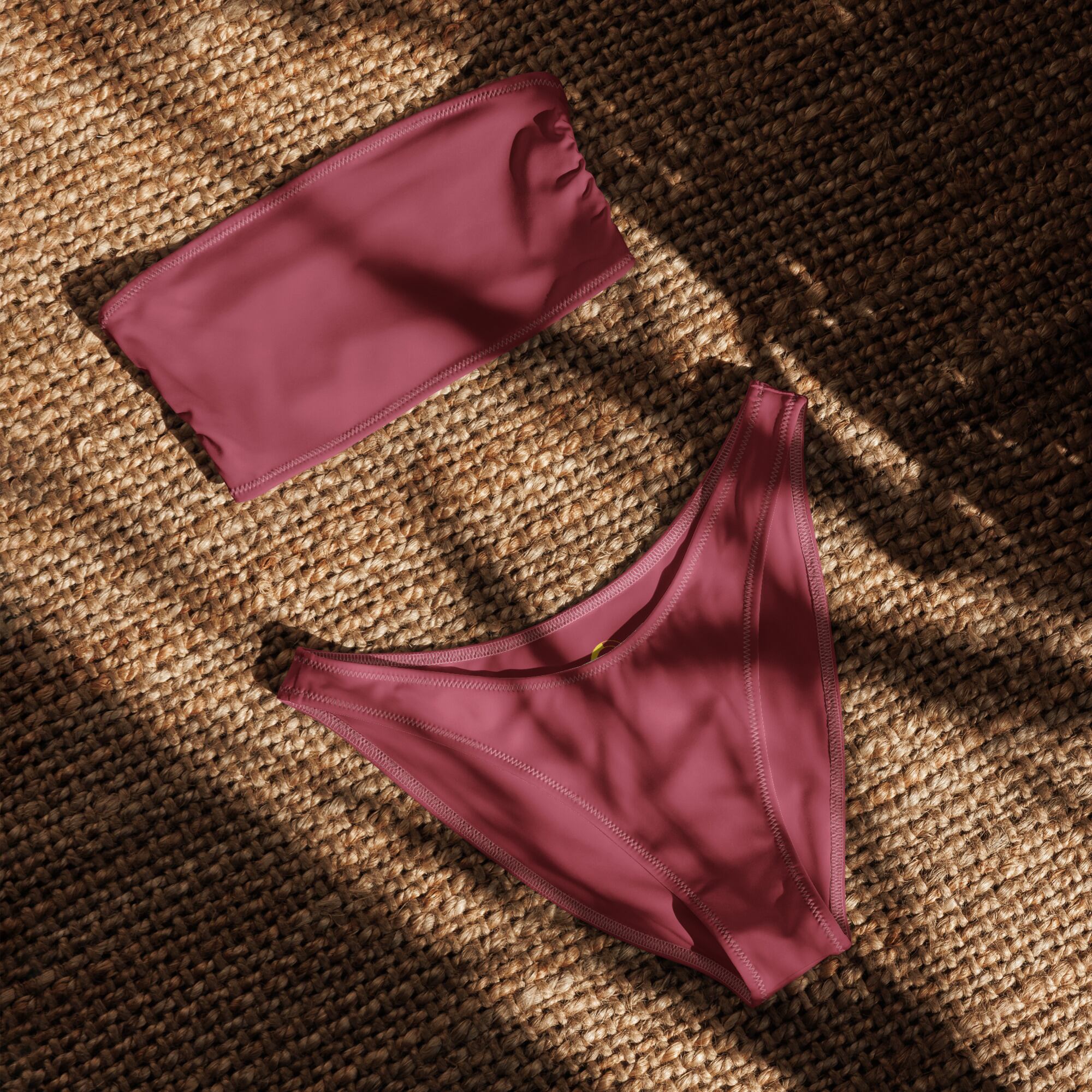Minimalist, flattering, and sustainable — the Rose Dusk Bandeau Bikini brings effortless elegance to every beach day. Designed with recycled materials and a soft, supportive fit, this deep rose-toned set is the perfect blend of conscious fashion and modern style.