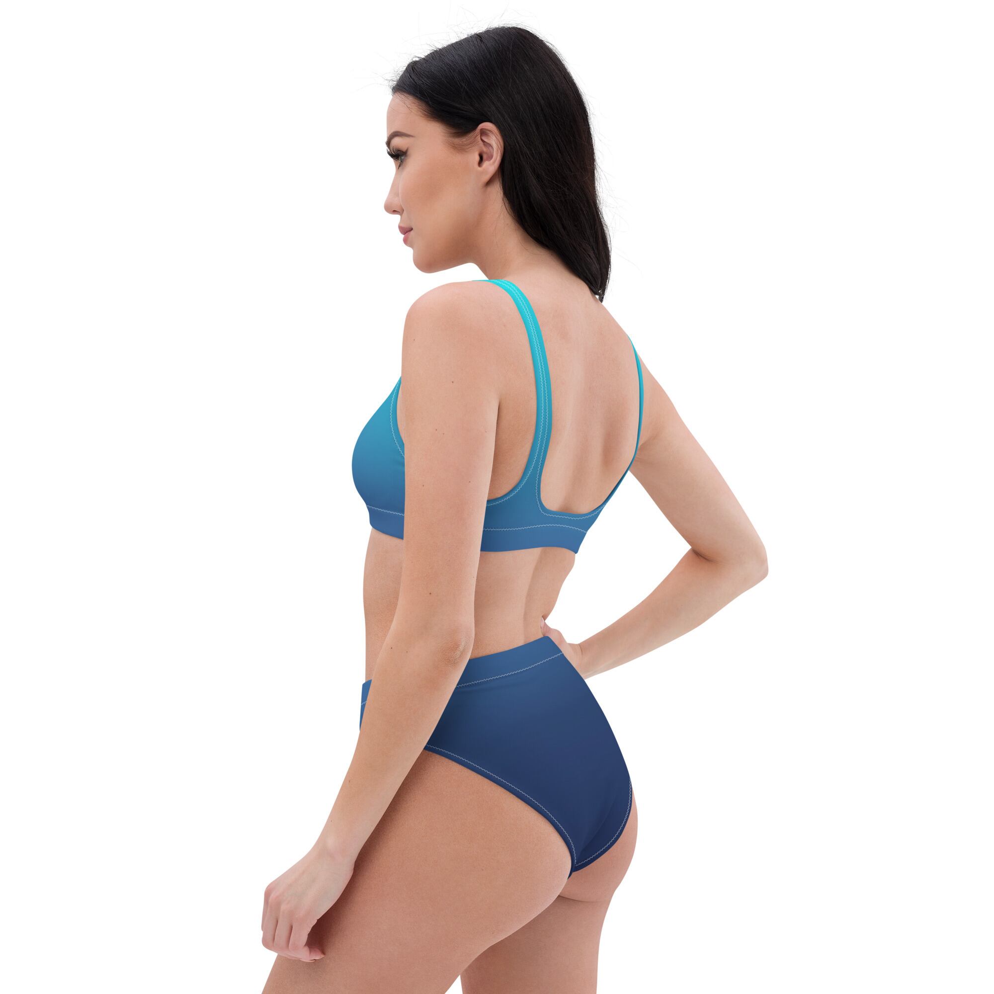 Dive into the calming depths of the ocean with our Ocean Ombre Bikini Set! This stunning set features a seamless fade from a vibrant aqua to a rich deep blue, echoing the beautiful transitions of the sea. The flattering scoop top provides comfortable support, while the high-waisted bottom offers a confident and smooth silhouette. Made from soft, stretchy recycled fabric, it's perfect for a serene day by the water or making a splash in style.