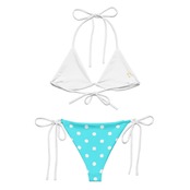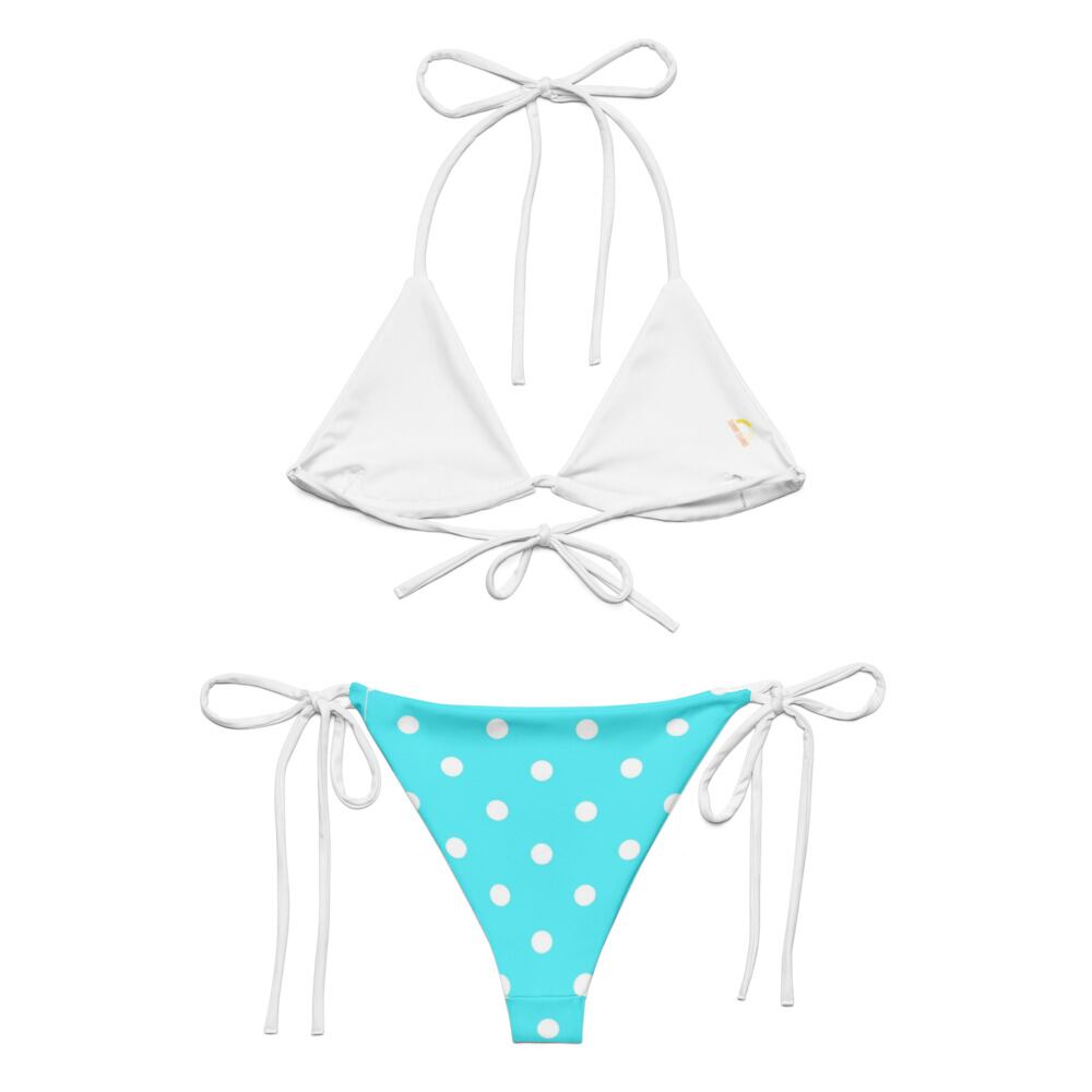 「バブル・ポップ ストリングビキニ」は、アクアブルーに映える白のドット柄がレトロ可愛いデザイン。