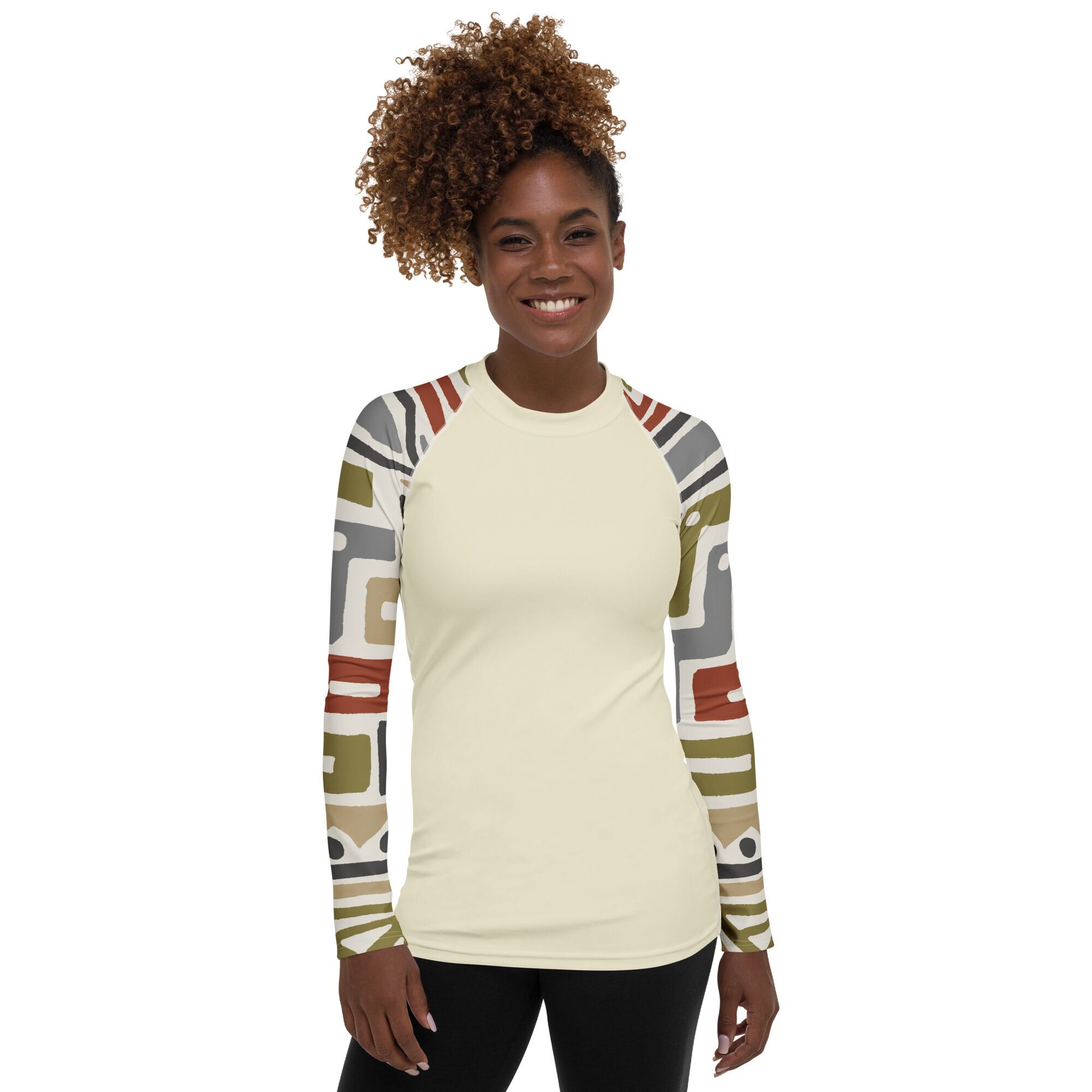 Move freely while staying protected with the Clay Rhythm Rash Guard. Featuring vibrant geometric sleeves inspired by clay, stone, and earth tones, this lightweight top pairs perfectly with the matching high-waisted bikini. Designed for performance and style, whether you're surfing, paddling, or relaxing poolside.