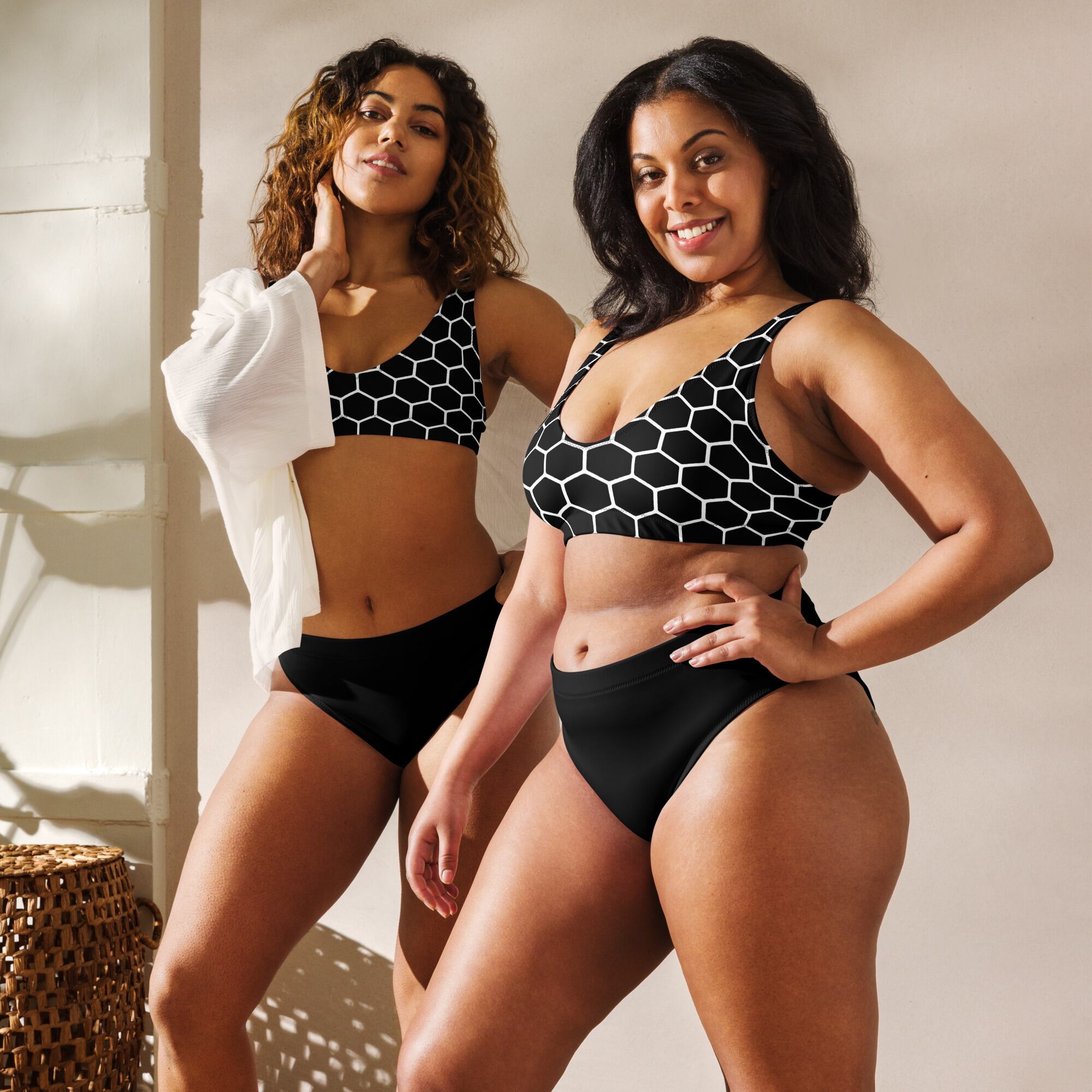 Make a bold statement with the Midnight Hex High-Waisted Bikini