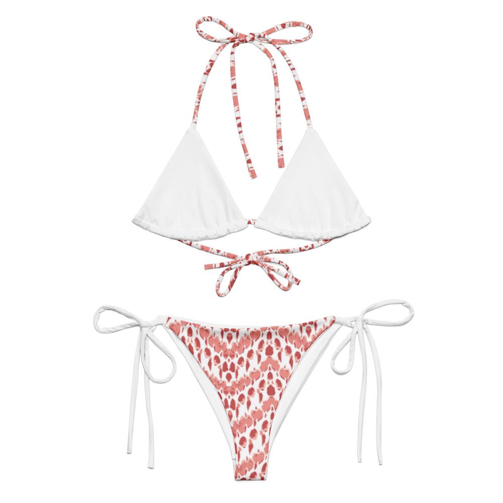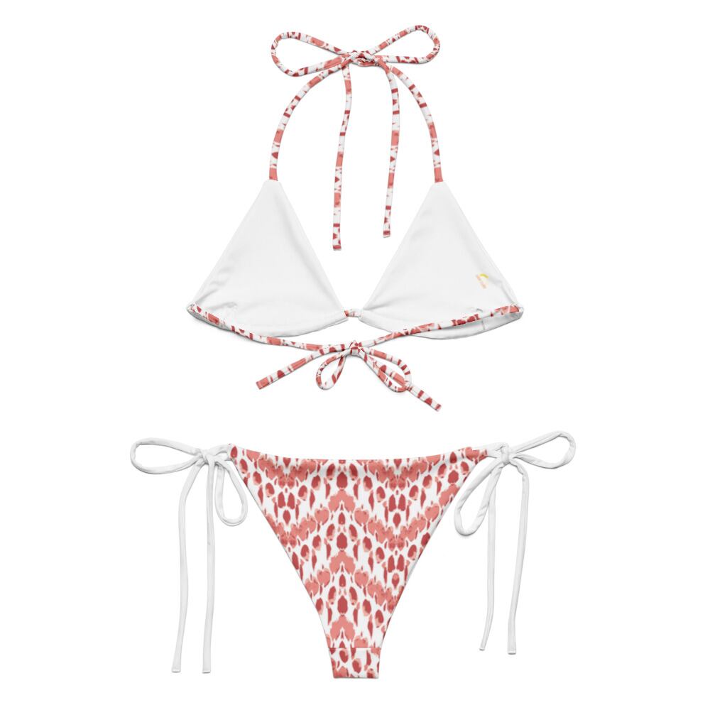 Fresh and playful, the Coral Drift Bikini Set blends crisp white with soft coral patterns for a look that’s both chic and effortless. With its flattering cut and adjustable ties, it’s designed for comfort while highlighting your natural style. Crafted from recycled materials, it’s a piece that feels as good as it looks.