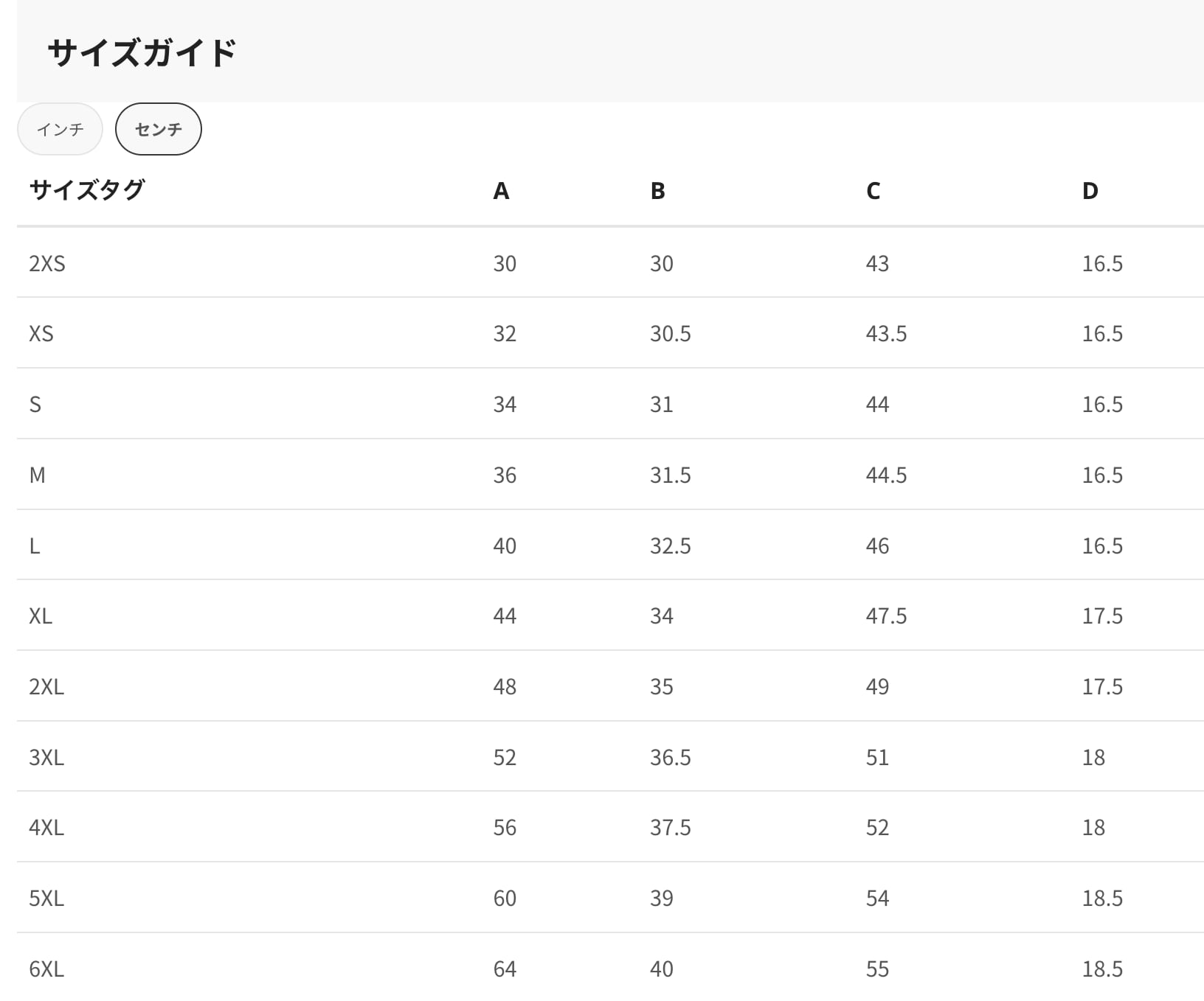 • 生地の重量(5%程度異なる場合があります):174 g/m²(5.13オンス/平方ヤード)
